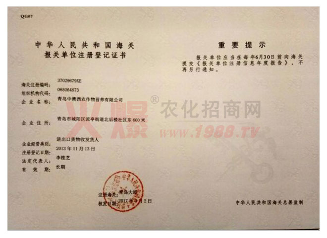 青島中澳西農(nóng)作物營(yíng)養(yǎng)有限公司經(jīng)過多年的發(fā)展,于2015年正式成為多元化地進(jìn)口產(chǎn)品營(yíng)運(yùn)商。不僅分銷國(guó)外先進(jìn)的植物營(yíng)養(yǎng)產(chǎn)品,還分銷國(guó)外的農(nóng)副產(chǎn)品(如葡萄酒、咖啡等)。公司在全國(guó)多地設(shè)有辦事處和周轉(zhuǎn)倉(cāng)庫(kù)。
